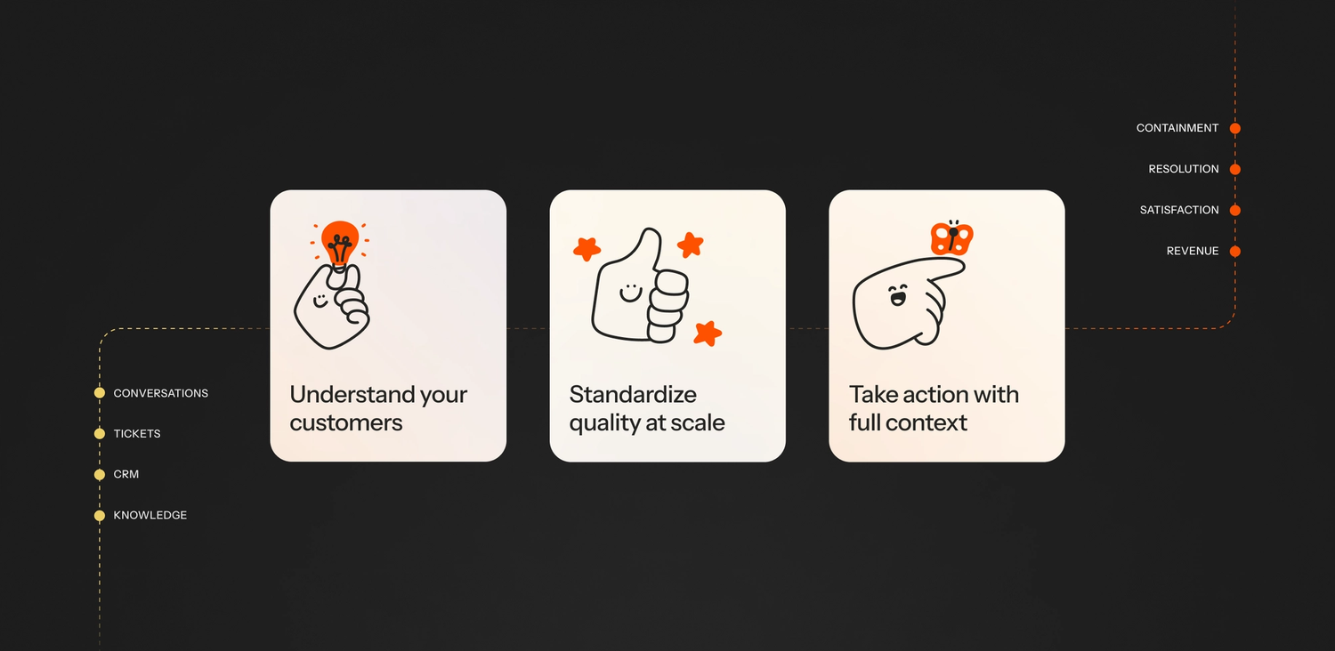 A source of truth built from every customer conversation. Turn unstructured interactions into business-ready insight across product, support, and operations.