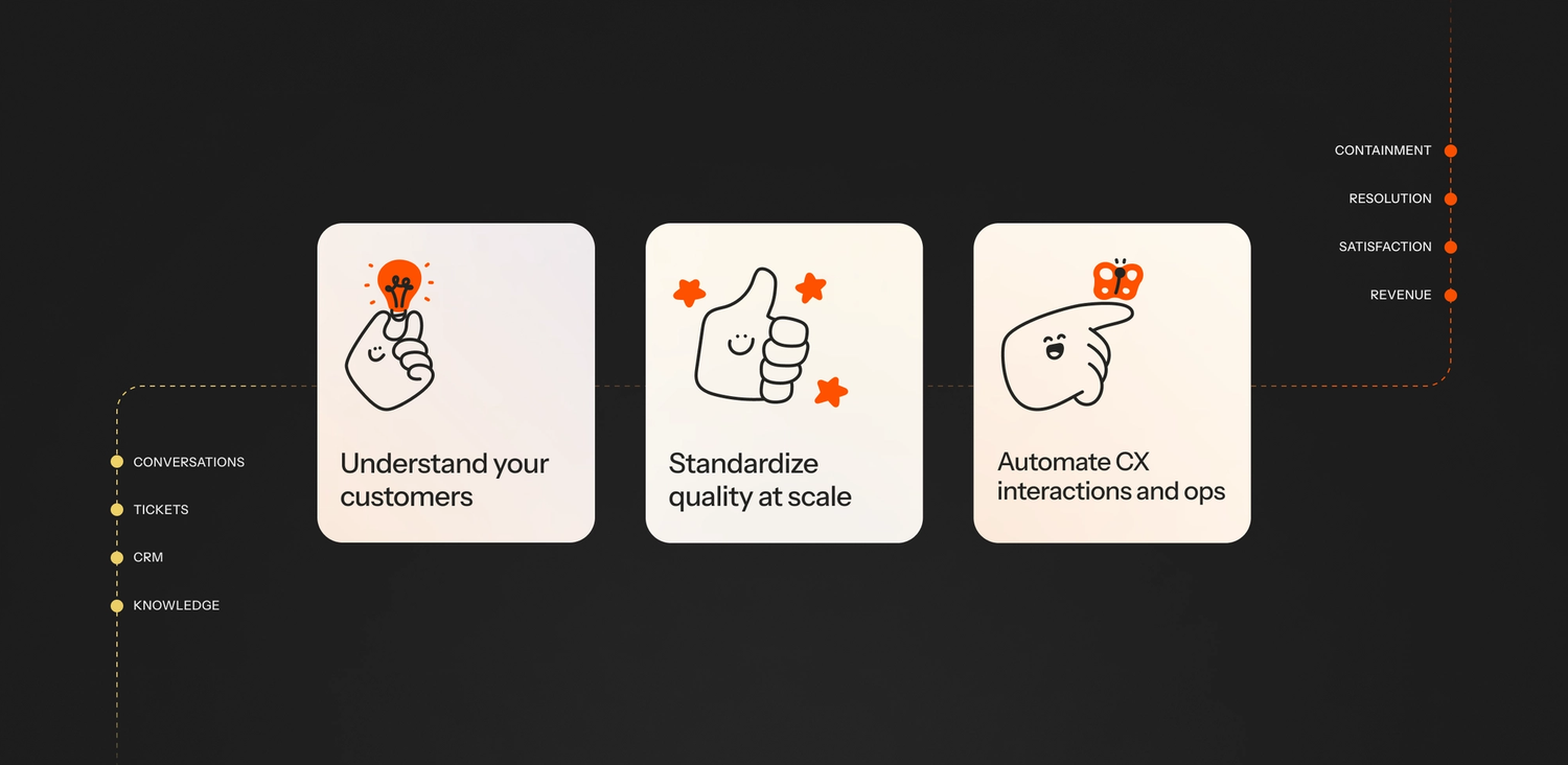 A source of truth built from every customer conversation. Turn unstructured interactions into business-ready insight across product, support, and operations.