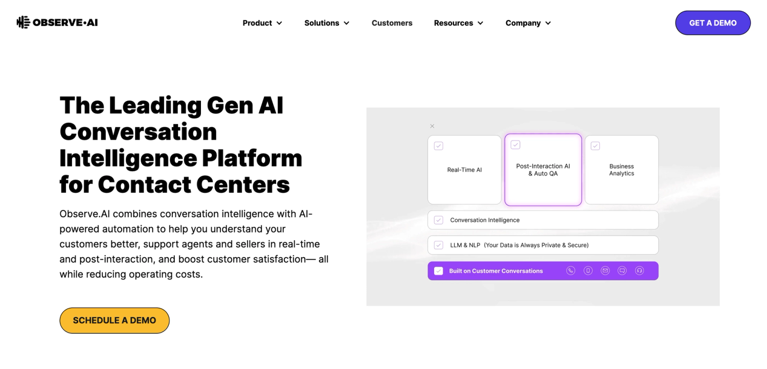 Observe AI is an AI and speech analytics solution for customer support and sales use cases. Customers can easily transcribe and analyze voice calls, get live sentiment analysis to gauge customer emotions, and unlock automated quality assurance scoring for agents.
