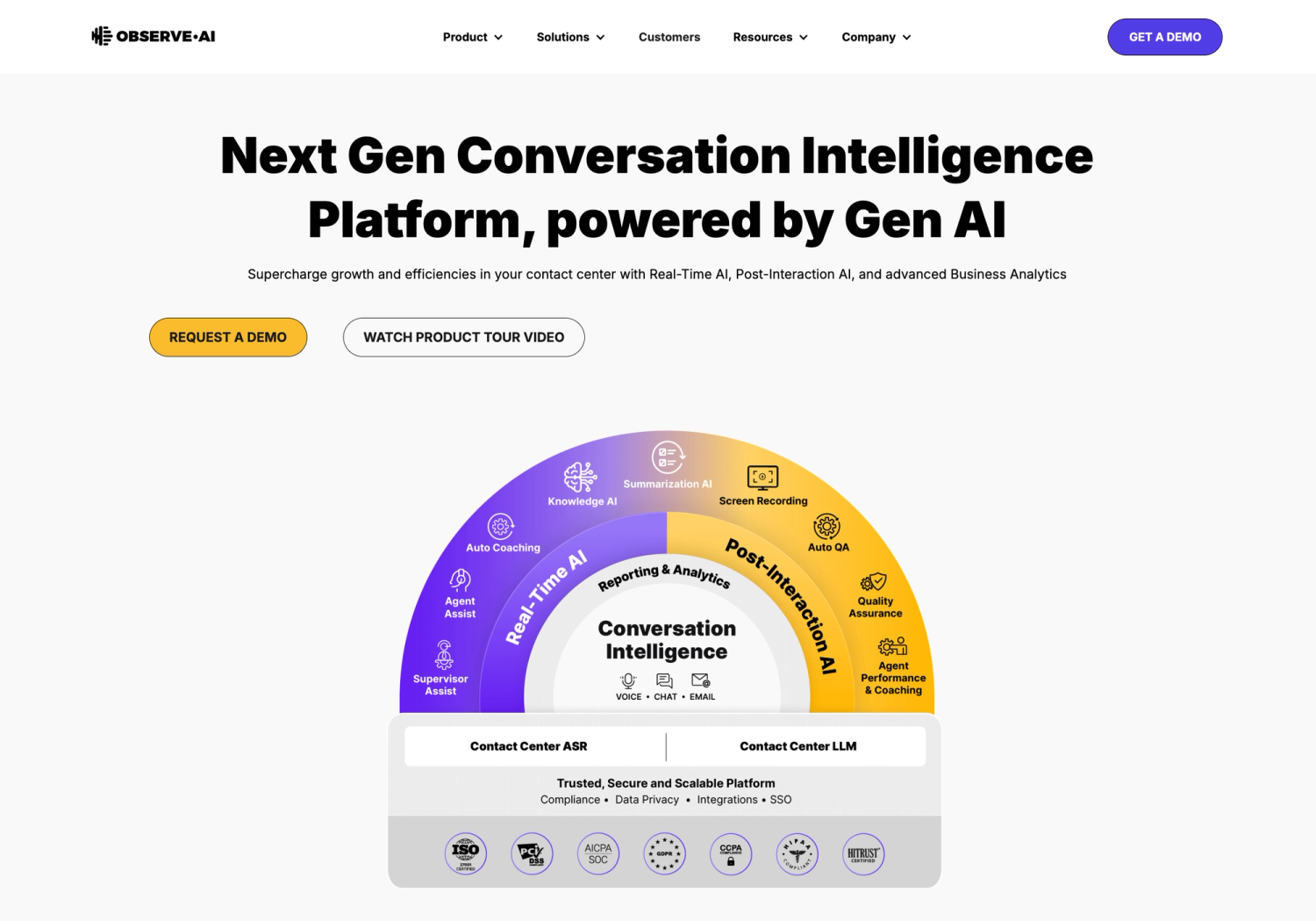 - Observe.AI: Provides visibility and awareness into customer conversations.