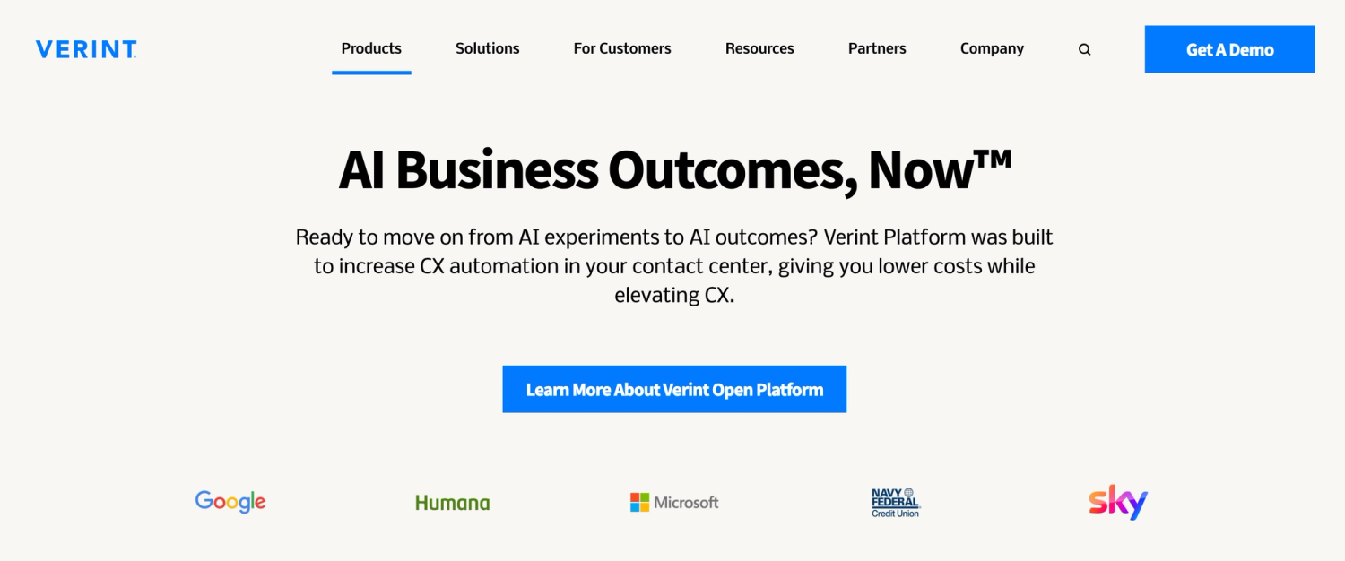 Verint is an analytics company that produces customer experience automation software for large enterprises and banks. They offer a suite of AI-powered bots for analyzing and auto-scoring customer interactions.