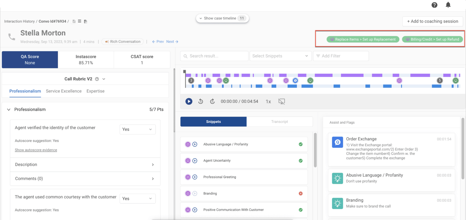 - Tag coachable moments: Automatically identify and tag key moments in conversations to facilitate coaching and training.