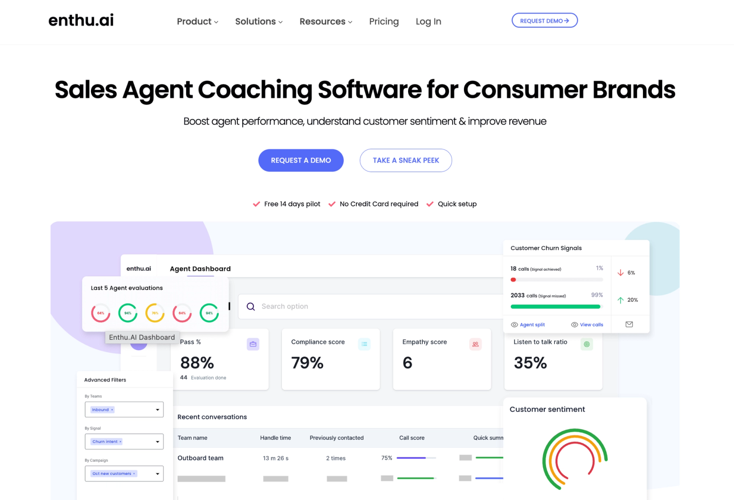 Enthu.AI is primarily a sales coaching tool for customer service representatives but also provides cloud features for automating quality management, including real-time coverage of customer conversations and service quality.