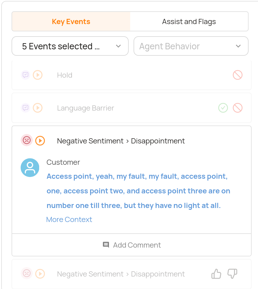 This makes it hard to give feedback to agents or spot issues when the vast majority of their interactions haven’t been evaluated. In addition, it makes it difficult to identify larger patterns in customer complaints and understand which offers will resonate with customers.