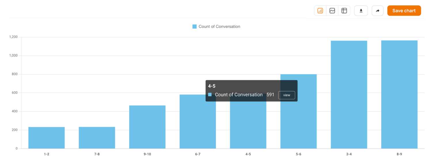 You can also build reports based on other data, such as Sentiment Score, grouping conversations into ranges from lower to higher.