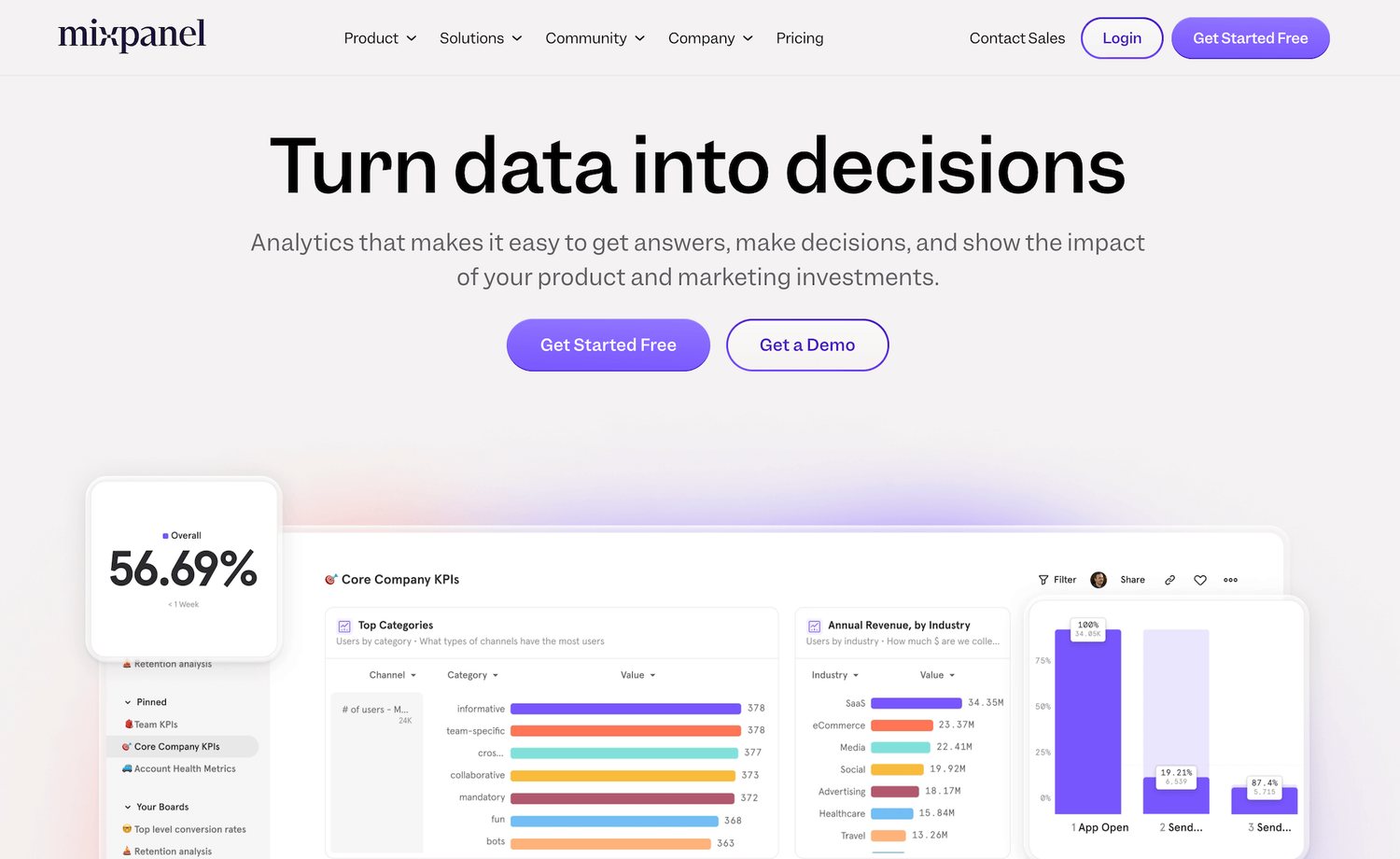 - Product and website analytics with customizable dashboards