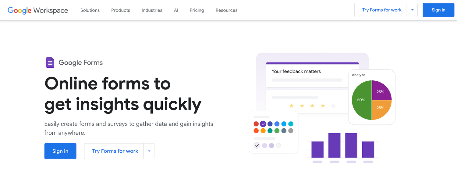 Google Forms is part of the Google Workspace Suite of productivity tools (like Gmail, Google Drive, Google Docs, etc.), which means it seamlessly integrates with these applications, allowing you to store responses in Google Sheets, share surveys via Gmail, and collaborate in real time with teammates — all without leaving the Google ecosystem.