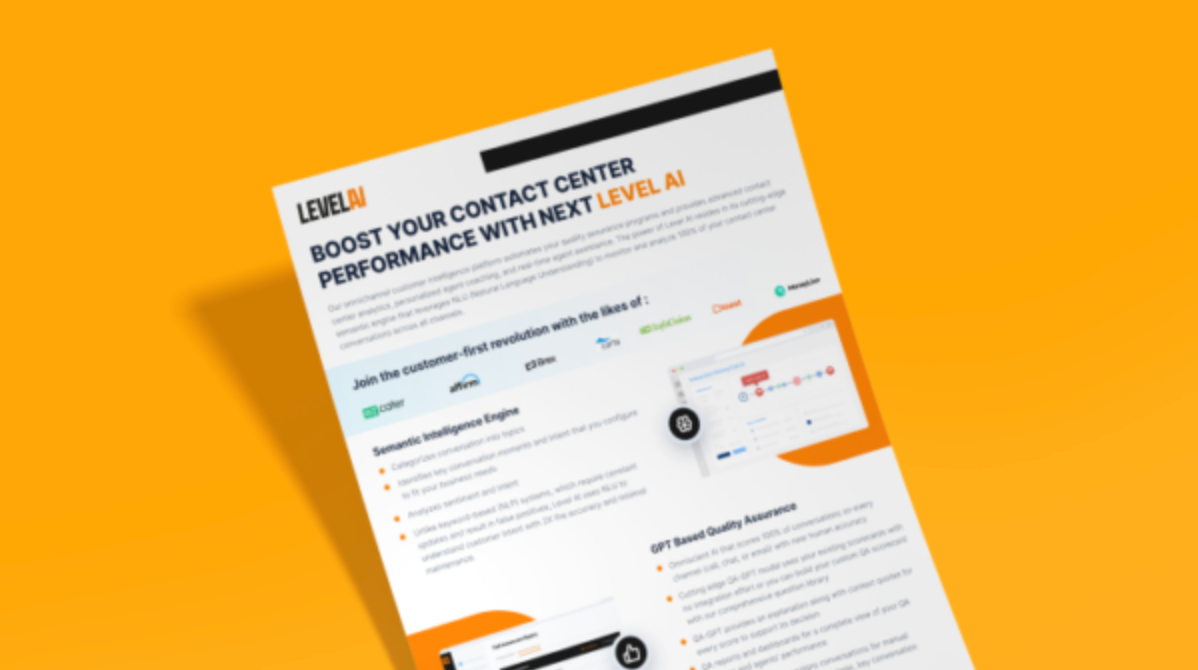 Boost Contact Center Performance with Next Level AI. Empower customer-facing teams to deliver exceptional customer experiences while being more operationally efficient in our latest datasheet.
