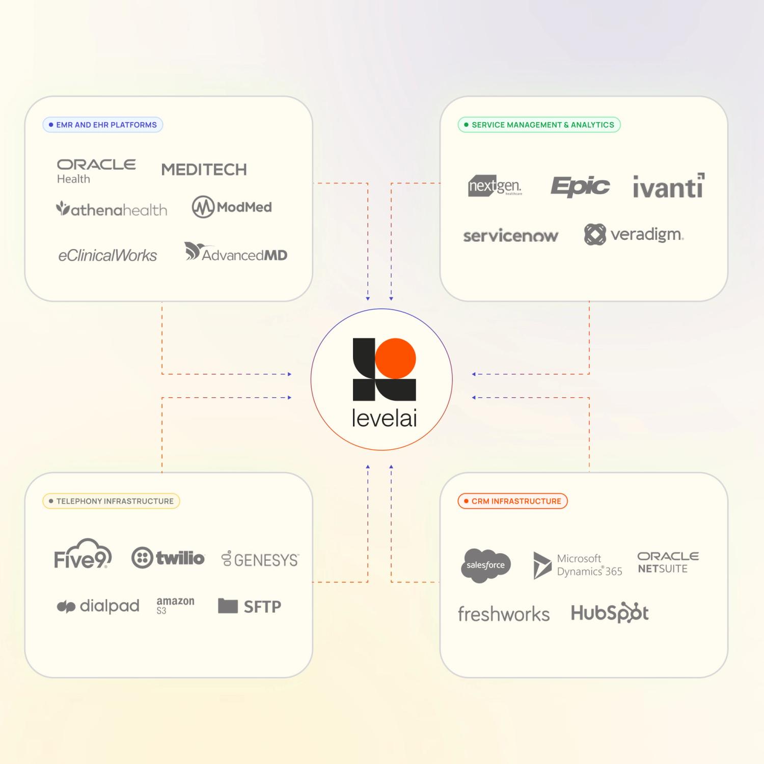 Direct integrations with EMR, EHR, service management, messaging and telephony systems. No custom infrastructure required.